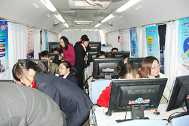 會后,信息化大篷車上,客服經理正在與客戶“一對一”現(xiàn)場演示