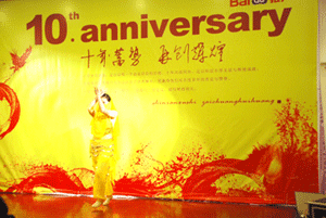 百度區(qū)域市場經理蘇晨晨、區(qū)域渠道經理曹宇、區(qū)域客服經理晏博與我公司高層領導一起同大家舉杯共慶百度十歲