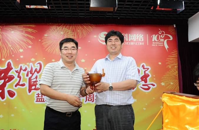 鞏總精彩發(fā)言后,就是激動人心的禮品贈送儀式,鞏總將一尊精美的“鼎”贈送給陳總,“鼎”是中華古代文明的一個象征,是代表和平、發(fā)展、昌盛的吉祥之物,也是古代盛酒之器。鞏總希望借“鼎”寓意鹽城思科能夠海納百川,承載四方之客,也同時預(yù)祝6月5日營銷中國行鹽城站戰(zhàn)果輝煌。緊接著金總將一匹來自北京的千里“馬”贈送給了陳總,金總在贈送儀式上特別闡明,送“馬”有三層寓意,1、千里馬常有而伯樂不常有,希望鹽城思科能夠在陳總的帶領(lǐng)之下培養(yǎng)更多的人才,讓思科的發(fā)展越來越好;2、思科能開著首創(chuàng)的搜索營銷體驗車,“我行我路”走遍鹽城每一個縣市區(qū),找到每一個有搜索服務(wù)需求的客戶,為更多的企業(yè)提供先進的營銷利器;服務(wù)地方經(jīng)濟。3、希望鹽城思科能夠在同行業(yè)中一馬當(dāng)先,龍門精神。并預(yù)祝6月5日活動圓滿成功。