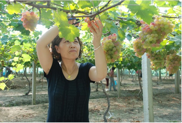 中小企業(yè)家們在葡萄種植大棚的簇?fù)硐拢粝铝嗣利惿碛?br/>