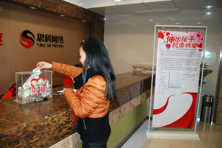 4月7日,在公司領導的關心和倡議下,鹽城思科全體員工發(fā)起了為陳煜同學愛心捐款的活動,大家都主動從自己的工資里拿出一百、五十、二十、十元……盡自己的微薄之力為陳煜同學獻上一份愛心,助其抗擊病魔,走出困境。